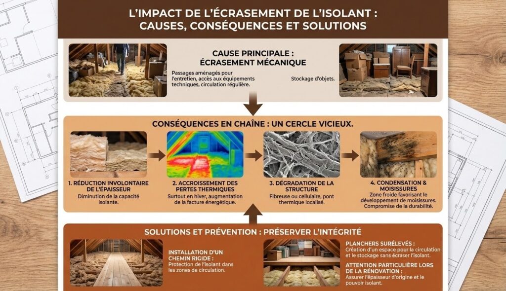 L’impact de l’écrasement de l’isolant dans les chemins de circulation en combles
